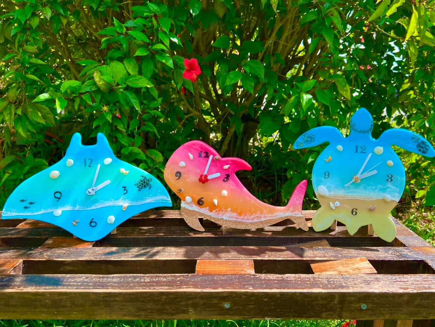 石垣島での【思い出】を形にして持ち帰りませんか? このプランでは円形時計を作ることができます! 飾る時計が自身で作ったレジンアートだったら素敵じゃないですか✨ 実用性があり、思い出を毎日確認することができます!✨ 貝を使って時計の数字代わりに組み込むことができます!(貝の種類は変わることがあります。) レジンアート体験に参加することで思い出に残る体験と自身で見た美しい海を描いて持ち帰ることができます! 一生の思い出になること間違いなしです! ⭐️料金⭐️ 20㎝丸時計 12000円 30㎝丸時計 16000円 (30cm時計は数字がカットされているボード、または、カットせずに木や貝殻を数字代わりにするボードの2種類から選べます!) ⭐️体験時間は1時間30分⭐️ ①10:00〜②12:30〜③14:30〜④16:00 ⭐️丁寧なレクチャー⭐️ 筆の使い方や色合いの相談など、細かな事まで丁寧にレクチャーをしますので絵に自信のない方や上手くできるか不安な方もご安心を!ご必要であれば満足頂ける作品に仕上げるお手伝いを全力でさせて頂きます! ⭐️石垣島鍾乳洞で開催⭐️ セットで鍾乳洞に行ける他、島料理の食堂やブルーシール(アイス)を食べれる店舗があります。また島のお土産もあり、品揃えも豊富です!半日は鍾乳洞で過ごす事ができます! ⭐️雨の日おすすめ⭐️ アクティビティが出来なくなることや観光地へのドライブもしづらくなるため特にオススメです! ⭐️近年大流行⭐️ SNSで大流行しているため見たことがある方も多いかと思います!石垣島でも人気な体験となっています! ⭐️家族・カップル・女性大歓迎⭐️ 老若男女楽しめる体験になっています!大人数での参加も歓迎していますのでご連絡下さい! ⭐️ レジンアート体験は参加者の99%が初心者⭐️ 誰でも作ることができます!できるか不安な方でも満足して帰られてます!✨ 「島人の職人」が【1時間半】丁寧にレクチャーします!お客様に“大満足でした!”と言って頂けることが多くなり、また部屋に飾っている写真を送って頂けることも多くやりがいを感じています! お客様の声を聞き【満足度を1番に考える】体験内容を実現します‼️ 思い出を形にできるのがレジンアートです! 石垣島の思い出に【レジンアート体験】いかがでしょうか? ☆レジンについて☆ 今回使用するレジンはエポキシレジンです。 2つの液体を混ぜ合わせて化学反応で硬化します。硬化には時間がかかります。 透明度が高く光沢があり高級感のある仕上がりになる液体です。 ☆主な材料☆ アートボード(200mm✖︎150mm)、アクリル絵の具、レジン液 ☆店主☆ 石垣島の海を愛し、島木を使った作品を表現してきました。また、初めてレジンアートと出会った時に、こんなにも海をリアルに描けるアートがあるのかと感銘を受け、気づけばレジンアートの虜になってしまいました。この素晴らしい体験を多くの方々に経験して頂きたいと思い、体験教室を始めました!これからもお客様にたくさんの【思い出】を作って頂けるよう精進して参ります!